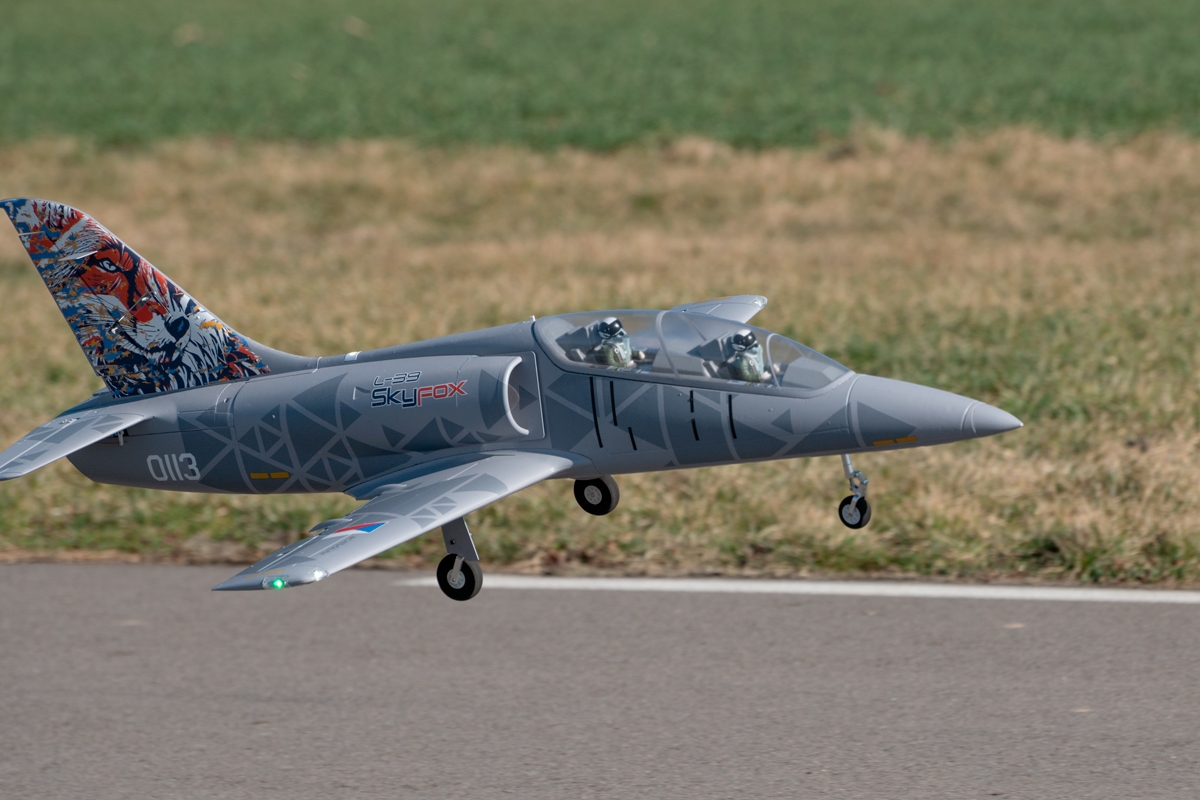 Będziesz potrzebować co najmniej 6-kanałowej aparatury RC, aby sterować swoim Skyfoxem; nawet radio niekomputerowe będzie działać, ponieważ serwomechanizmy lotek, klap, steru kierunku i sterowanego przedniego podwozia są sterowane przez pojedynczy kanał (połączone za pomocą wstępnie zainstalowanej płytki połączeniowej). Płytka zasila również światła LED; podłączony sekwencer steruje chowaniem podwozia . Instrukcja obsługi zawiera dokładnie przetestowaną tabelę ustawień, aby pomóc Ci łatwo skonfigurować L-39.