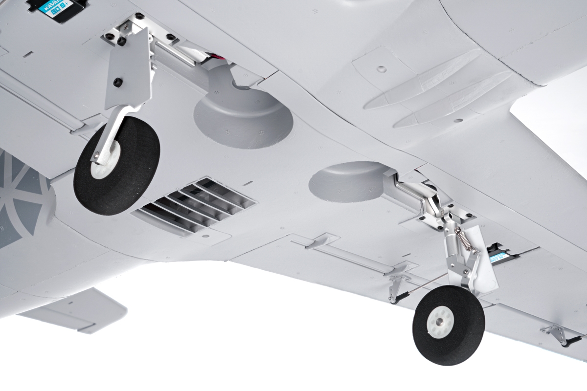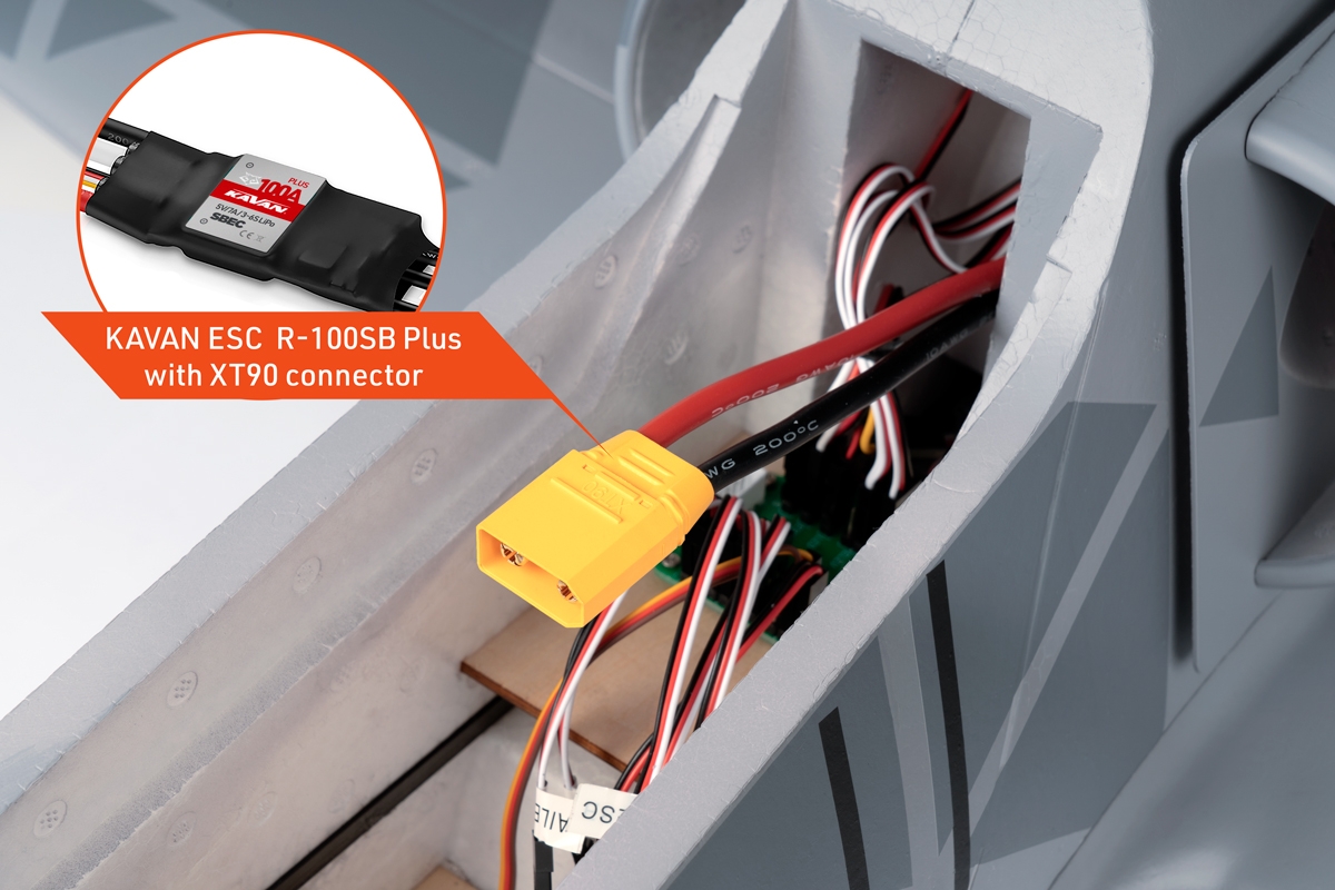 Konstrukcja : Kadłub z pianki EPO, całkowicie wzmocniony węglem, wyposażony jest w wentylator EDF 80 mm z bezszczotkowym silnikiem C3552-2000 i regulator KAVAN R-100SB Plus ESC z mocnym przełączanym stabilizatorem SBEC niezbędnym do zasilania wszystkich 8 serwomechanizmów na pokładzie. Zdejmowana górna część ogona kadłuba zabezpieczona śrubami zapewnia łatwy dostęp do wentylatora i silnika. Zdejmowana osłona jest zabezpieczona kołkiem z przodu i jednym zatrzaskiem z tyłu. Komora kokpitu oferuje dużo miejsca na odbiornik i pakiet napędowy. Jednoczęściowe skrzydło EPO jest wzmocnione dźwigarami węglowymi i połączone łącznikiem rurowym z włókna węglowego. Skrzydło jest przymocowane do kadłuba za pomocą śrub. Lotki i klapy są sterowane przez dwie pary serwomechanizmów zainstalowanych w skrzydle, napędzanych krótkimi drucianymi popychaczami; są również zainstalowane światła LED pozycyjne i lądowania .Usterzenie ogonowe wykonane jest z pianki EPO. Serwa steru wysokości i kierunku zamontowane są w stateczniku i kadłubie.