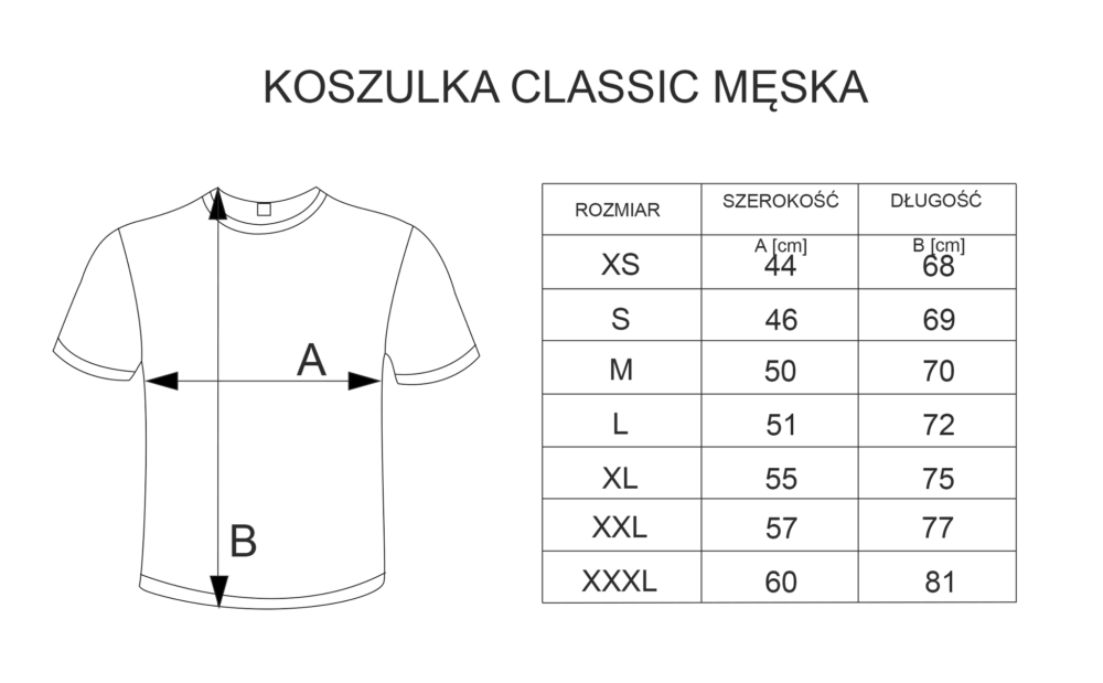 Proszę zapoznać się z tabelą rozmiarów.